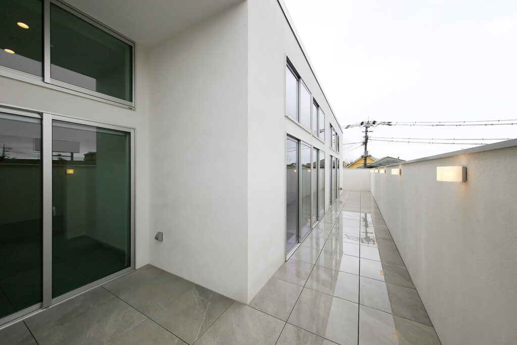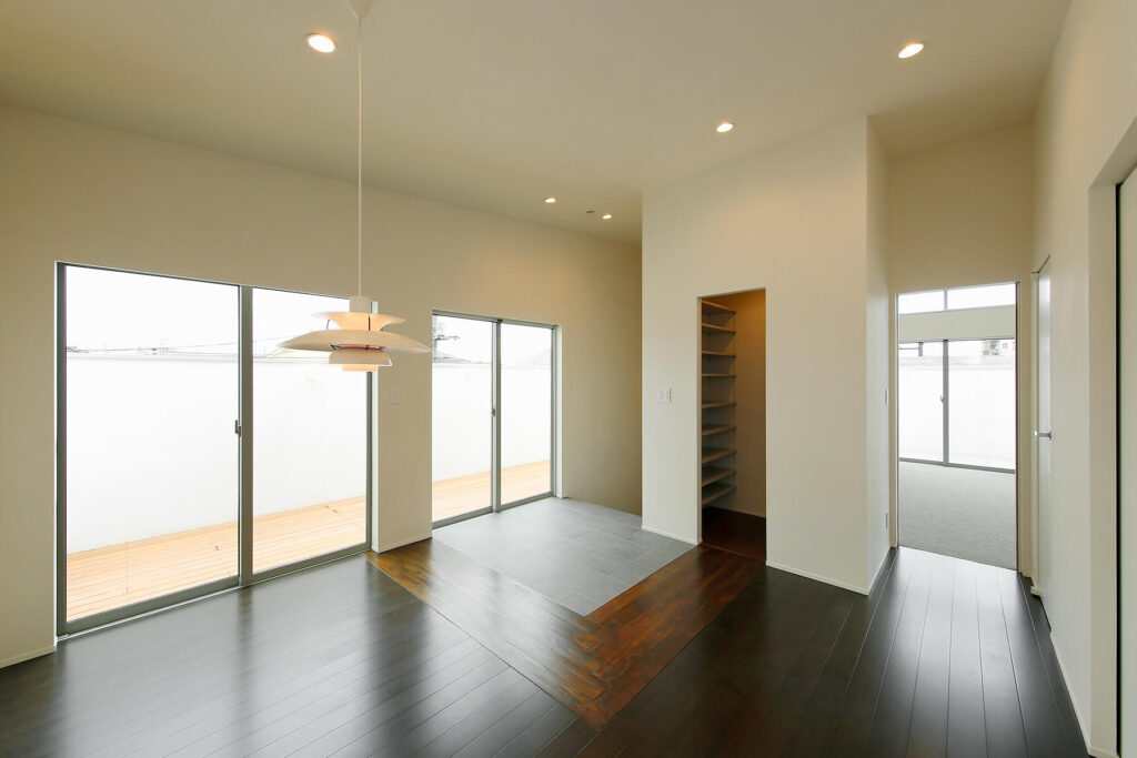 また、1階では縁側を設けているが、2階に関してはLDKや玄関部分に沿って奥行きのあるバルコニーを設けており、1階と2階でテイストは違えど、外部空間との繋がりが感じられる造りに。